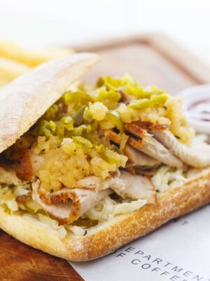 FRENCH AFFAIR Roast beef, Dijon mustard, caramelised onion and cherry tomato chutney in a multi grain ciabatta. DOC suggests adding: Melted brie Category: SANDWICHES Related products THE DOC’s BREKKIE THE LOUISIANA THE NORDIC ROAST PORK & APPLE