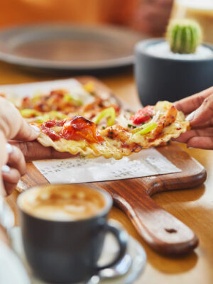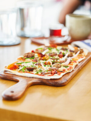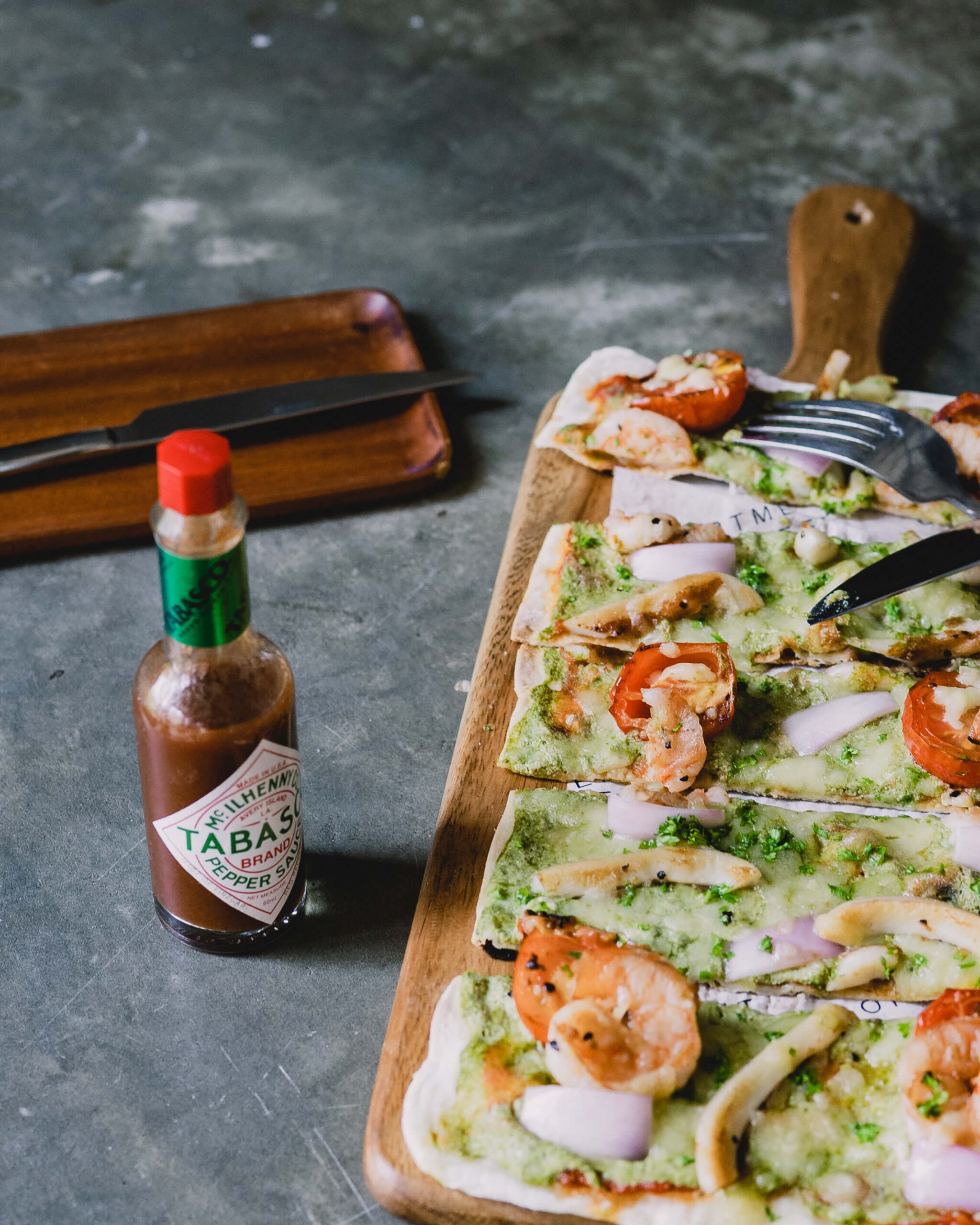 THE CATCH Seared prawns, grilled cuttlefish, salsa verde***, cherry tomatoes, fromage à la crème. Category: FLATBREADS Related products PICCANTE TRIPLE PORK AUTUMN (V)
