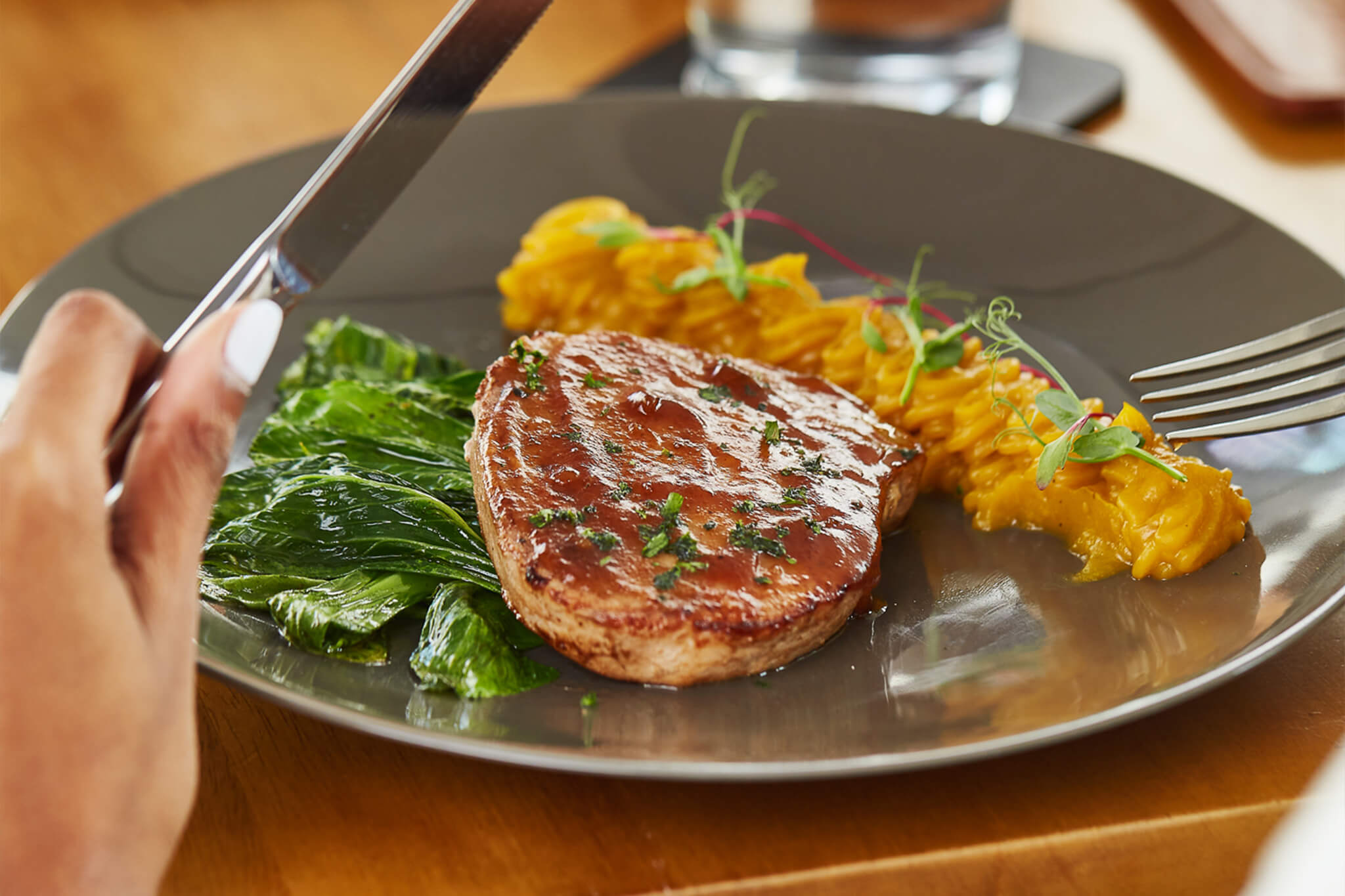 Yellow Fin Seared Tuna steak, butternut squash pureé, blanched bok-choy and house-made tamarind sauce. Category: SEAFOOD Related products Seafood Verde The Tender Puttanesca